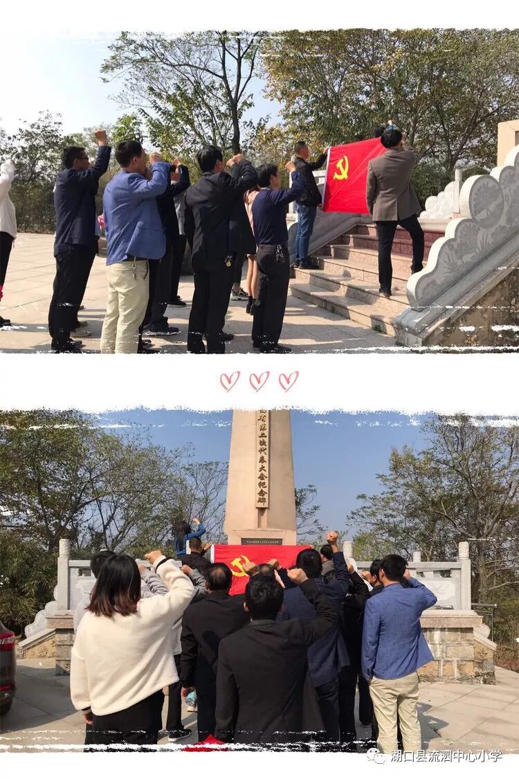 在舜德乡王遂村中共江西省第二次代表大会纪念碑前,全体党员重温入党誓词,面对鲜红的旗帜,回顾入党时的庄严承诺,进一步坚定理想信念,牢记使命。